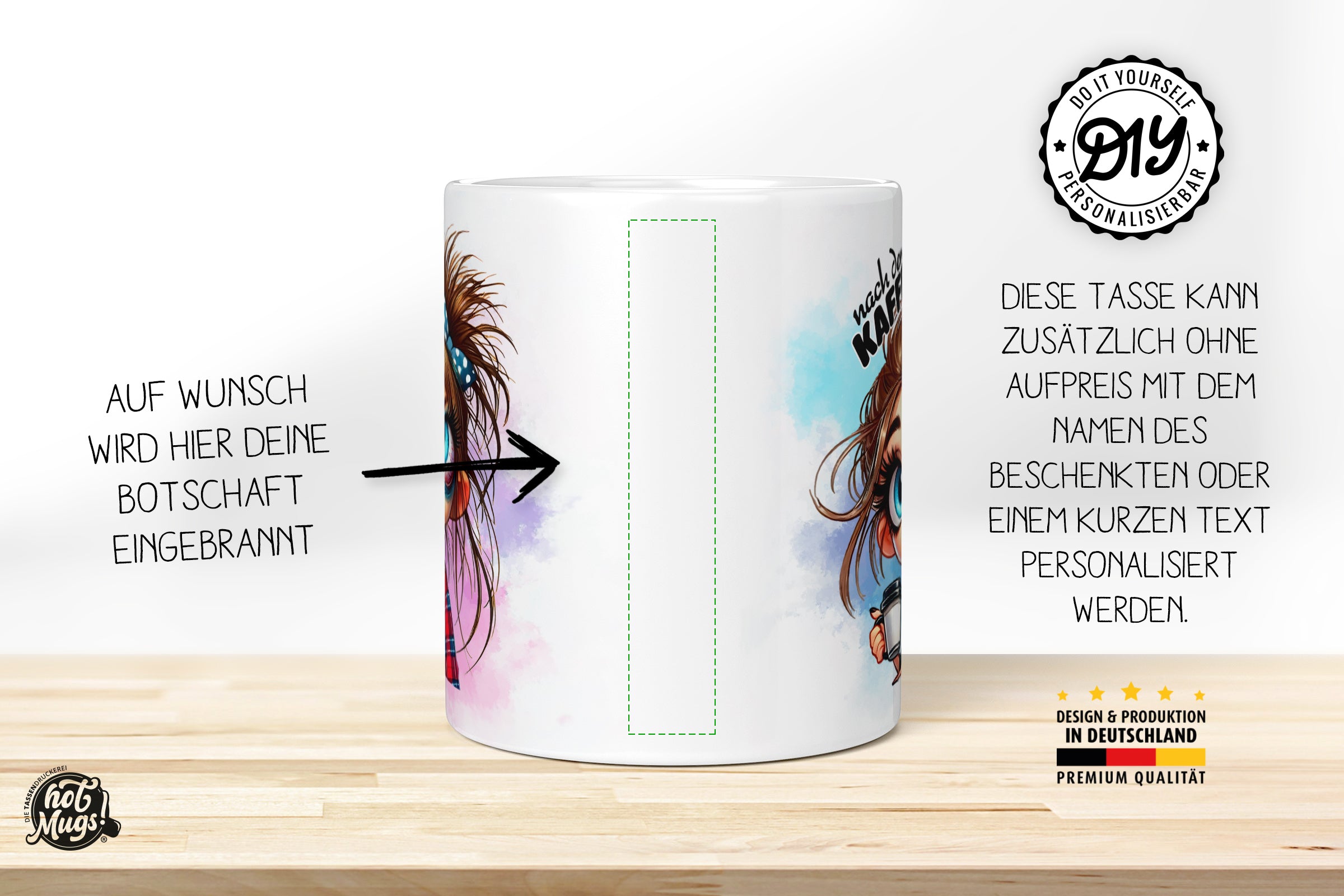 Frisch bedruckt kommt diese Tasse auf Deinen Tisch. In kräftigen Farben und spülmaschinenfest, damit Du lange Freude daran hast. Das Motiv „Vor / Nach dem Kaffee – Frau“ wird im hochwertigen Sublimationsdruck in die Keramiktasse eingebrannt und ist ein Hingucker beim Frühstück, im Büro oder im Verein. Auch als Geschenkidee eignen sich unsere Motivtassen bestens! Zum Geburtstag, Jahrestag, für den neuen Job oder als kleine Liebesbotschaft. Bedruckte Tassen aus der HotMugs-Tassendruckerei zaubern garantiert ein Lächeln auf die Lippen und werden gerne benutzt.
